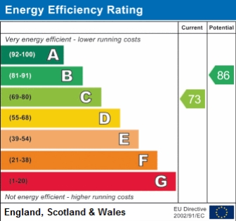 KITCHEN/DINING ROOM: With matching wall and base units with granite worktops, inset single drainer sink, integrated Neff oven, gas hob and extractor unit, tiled splash backs, gas boiler serving central heating and hot water, radiator, understairs cupboard with shelving, window and patio doors to rear.